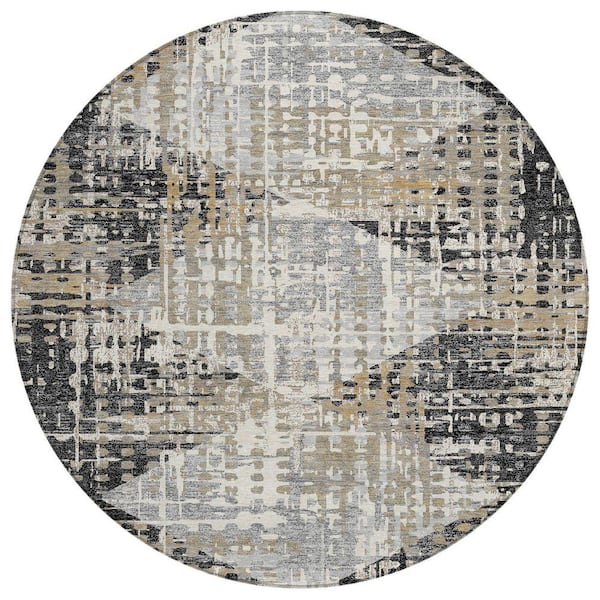 Chantille Machine Washable Indoor/Outdoor Abstract ACN2116 Black 8 ft. x 8 ft. Area Rug