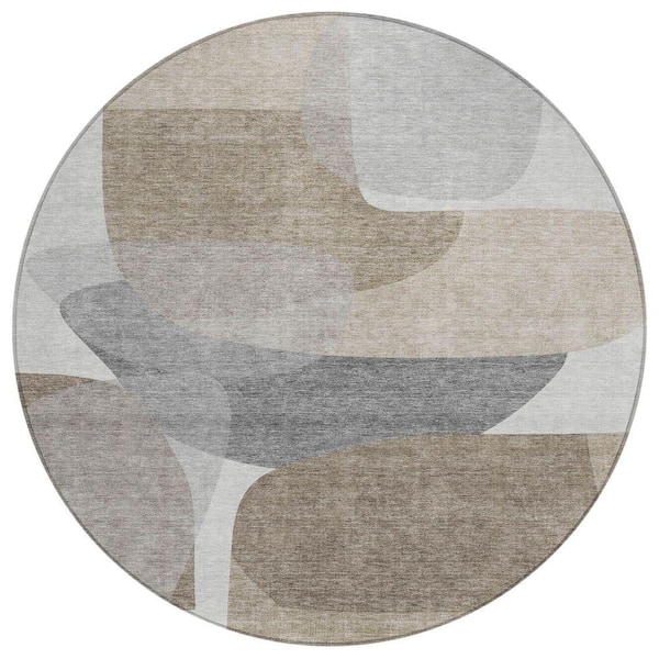 Chantille Machine Washable Indoor/Outdoor Abstract ACN2121 Taupe 8 ft. x 8 ft. Area Rug