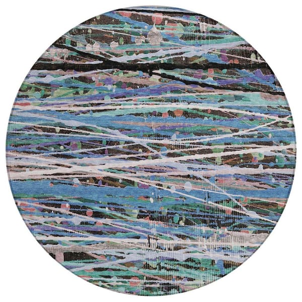 Chantille Machine Washable Indoor/Outdoor Abstract ACN2125 Blue 8 ft. x 8 ft. Area Rug