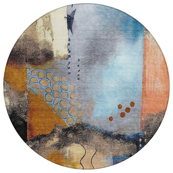 Chantille Machine Washable Indoor/Outdoor Abstract ACN2127 Copper 8 ft. x 8 ft. Area Rug