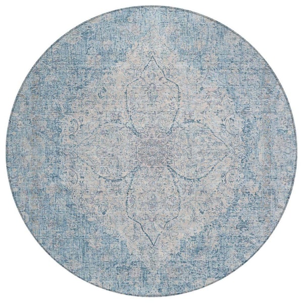 Chantille Machine Washable Indoor/Outdoor Abstract ACN2136 Denim 8 ft. x 8 ft. Area Rug