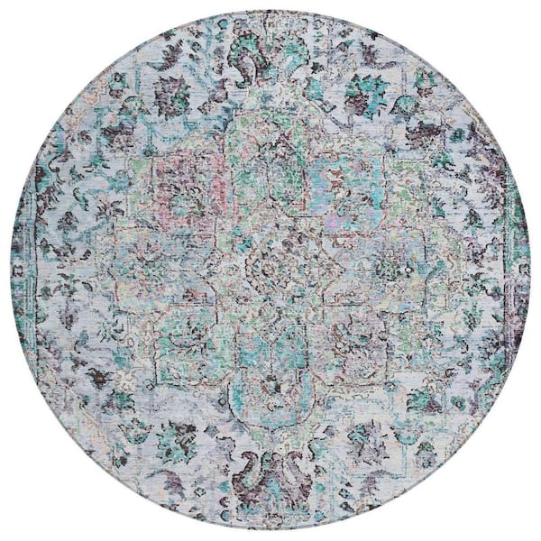 Chantille Machine Washable Indoor/Outdoor Abstract ACN2138 Sky 8 ft. x 8 ft. Area Rug