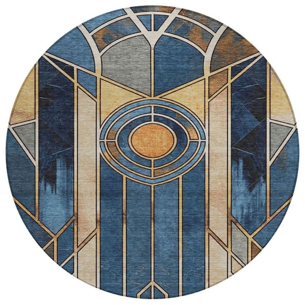 Chantille Machine Washable Indoor/Outdoor Abstract ACN2176 Blue 8 ft. x 8 ft. Area Rug