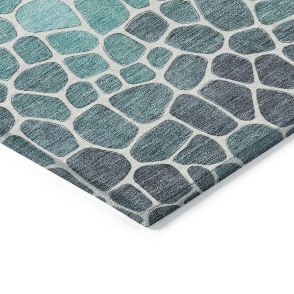 Chantille Machine Washable Indoor/Outdoor Abstract ACN2190 Teal 8 ft. x 8 ft. Area Rug