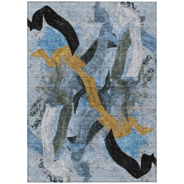 Chantille Machine Washable Indoor/Outdoor Abstract ACN2191 Denim 8 ft. x 10 ft. Area Rug