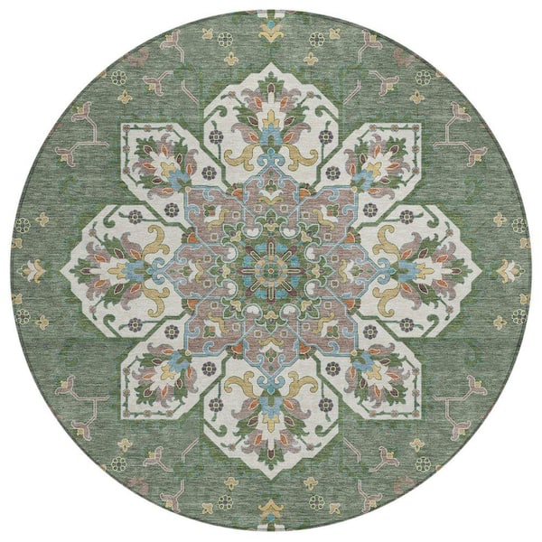 Chantille Machine Washable Indoor/Outdoor Abstract ACN2194 Green 8 ft. x 8 ft. Area Rug