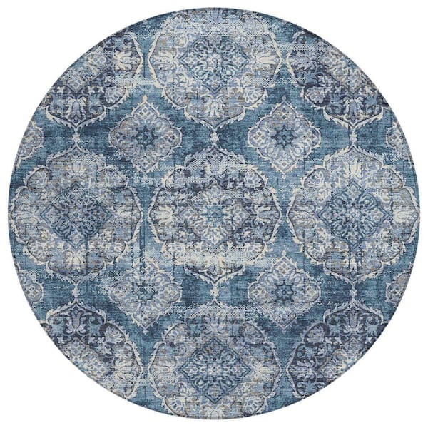 Chantille Machine Washable Indoor/Outdoor Abstract ACN2196 Denim 8 ft. x 8 ft. Area Rug