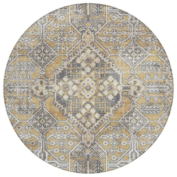 Chantille Machine Washable Indoor/Outdoor Abstract ACN2197 Gold 8 ft. x 8 ft. Area Rug