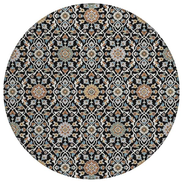 Chantille Machine Washable Indoor/Outdoor Abstract ACN2199 Black 8 ft. x 8 ft. Area Rug