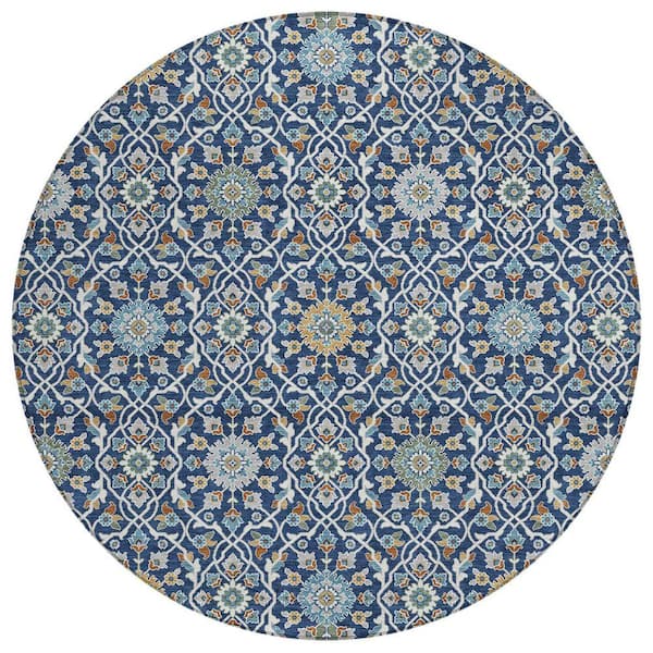 Chantille Machine Washable Indoor/Outdoor Abstract ACN2199 Navy 8 ft. x 8 ft. Area Rug