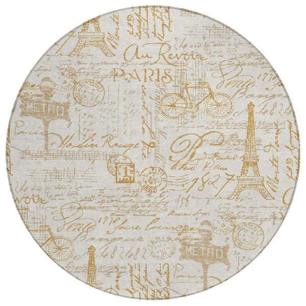 Chantille Machine Washable Indoor/Outdoor Abstract ACN2209 Gold 8 ft. x 8 ft. Area Rug