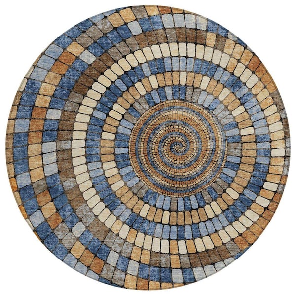 Chantille Machine Washable Indoor/Outdoor Abstract ACN2216 Denim 8 ft. x 8 ft. Area Rug