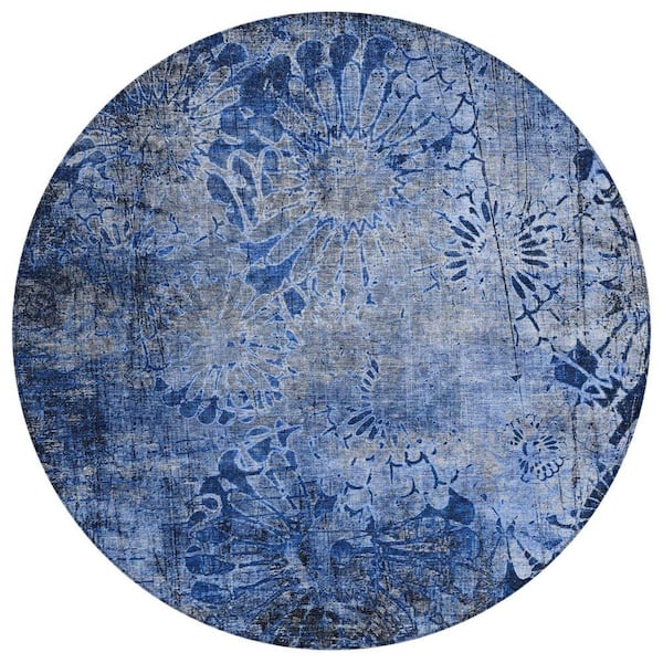 Chantille Machine Washable Indoor/Outdoor Abstract ACN2224 Navy 8 ft. x 8 ft. Area Rug