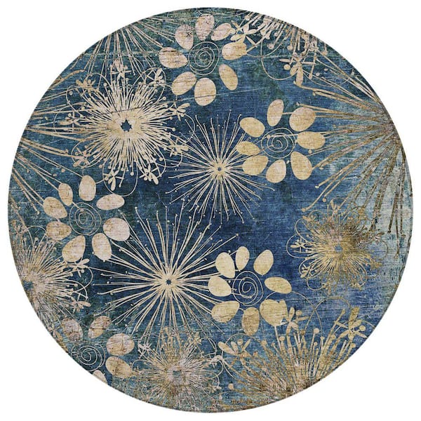 Chantille Machine Washable Indoor/Outdoor Abstract ACN2225 Navy 8 ft. x 8 ft. Area Rug