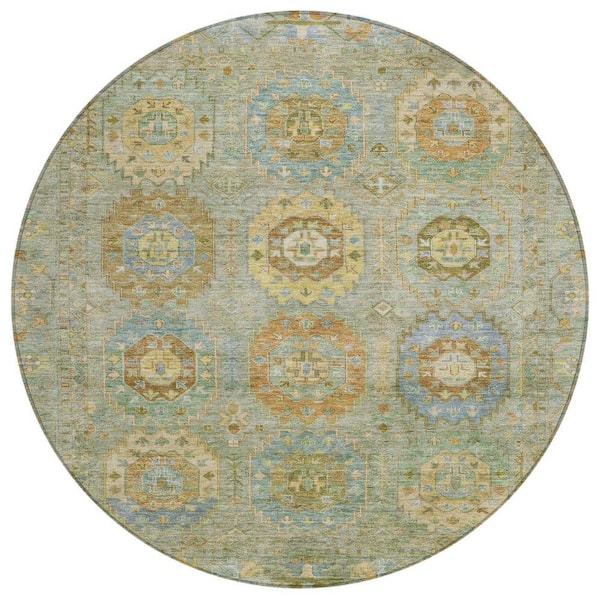 Chantille Machine Washable Indoor/Outdoor Abstract ACN2227 Aloe 8 ft. x 8 ft. Area Rug