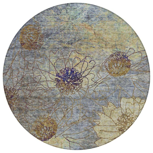 Chantille Machine Washable Indoor/Outdoor Abstract ACN2235 Denim 8 ft. x 8 ft. Area Rug