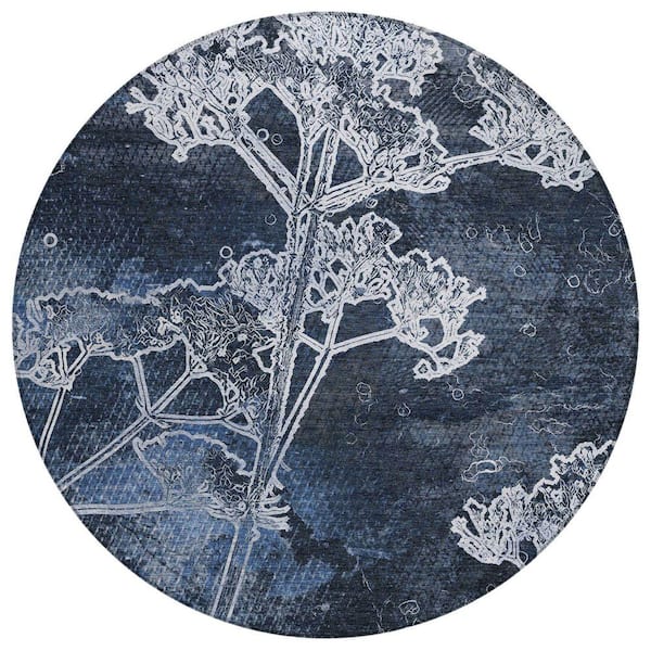 Chantille Machine Washable Indoor/Outdoor Abstract ACN2239 Navy 8 ft. x 8 ft. Area Rug