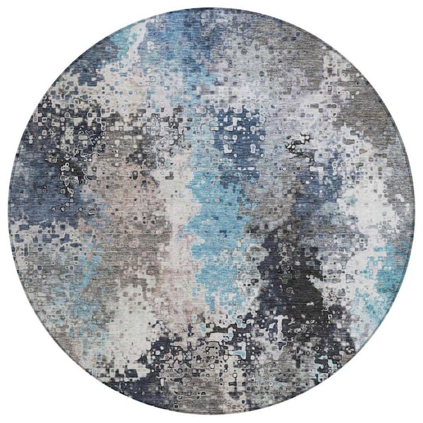 Chantille Machine Washable Indoor/Outdoor Abstract ACN2242 Denim 8 ft. x 8 ft. Area Rug