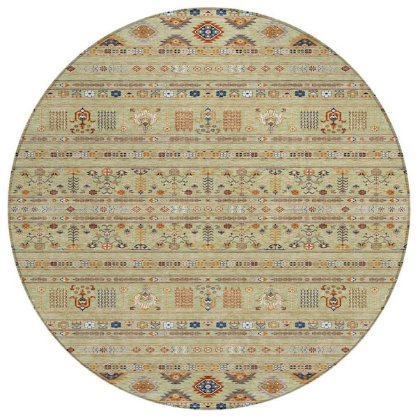 Chantille Machine Washable Indoor/Outdoor Abstract ACN2244 Aloe 8 ft. x 8 ft. Area Rug