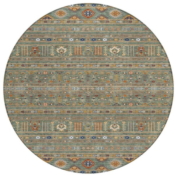 Chantille Machine Washable Indoor/Outdoor Abstract ACN2244 Sage 8 ft. x 8 ft. Area Rug