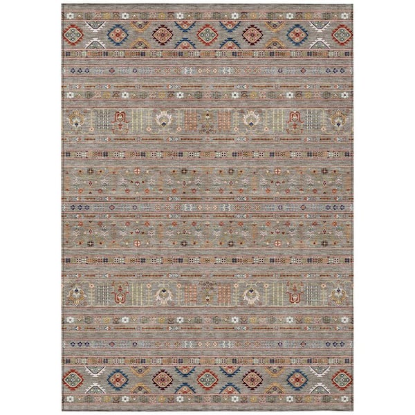 Chantille Machine Washable Indoor/Outdoor Abstract ACN2244 Taupe 8 ft. x 10 ft. Area Rug