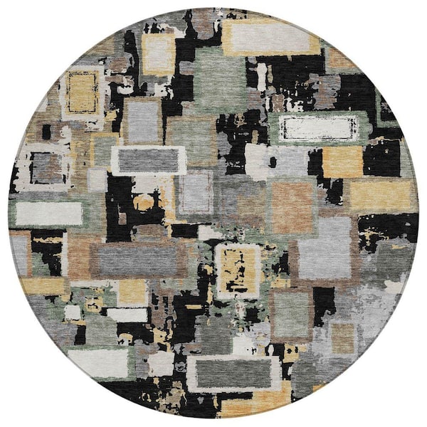 Chantille Machine Washable Indoor/Outdoor Abstract ACN2246 Black 8 ft. x 8 ft. Area Rug