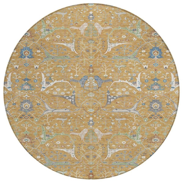 Chantille Machine Washable Indoor/Outdoor Abstract ACN2250 Gold 8 ft. x 8 ft. Area Rug