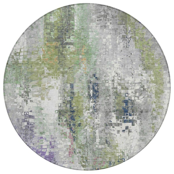 Chantille Machine Washable Indoor/Outdoor Abstract ACN2254 Aloe 8 ft. x 8 ft. Area Rug