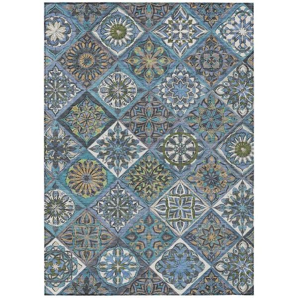 Chantille Machine Washable Indoor/Outdoor Abstract ACN2256 Denim 9 ft. x 12 ft. Area Rug
