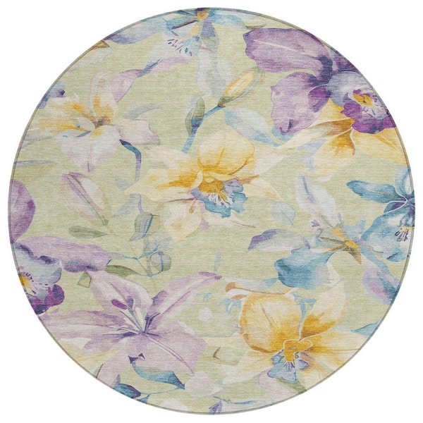 Chantille Machine Washable Indoor/Outdoor Abstract ACN2262 Aloe 8 ft. x 8 ft. Area Rug