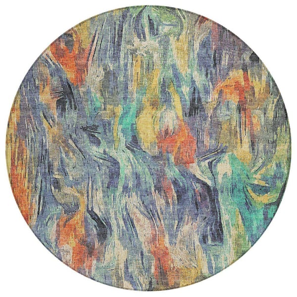 Chantille Machine Washable Indoor/Outdoor Abstract ACN2269 Denim 8 ft. x 8 ft. Area Rug