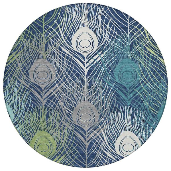 Chantille Machine Washable Indoor/Outdoor Abstract ACN2273 Navy 8 ft. x 8 ft. Area Rug