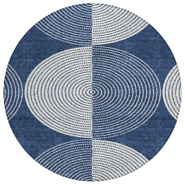 Chantille Machine Washable Indoor/Outdoor Abstract ACN2275 Navy 8 ft. x 8 ft. Area Rug