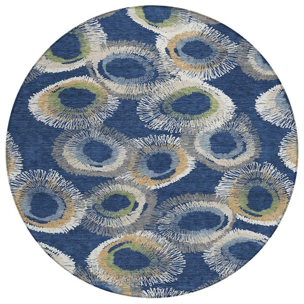 Chantille Machine Washable Indoor/Outdoor Abstract ACN2278 Navy 8 ft. x 8 ft. Area Rug