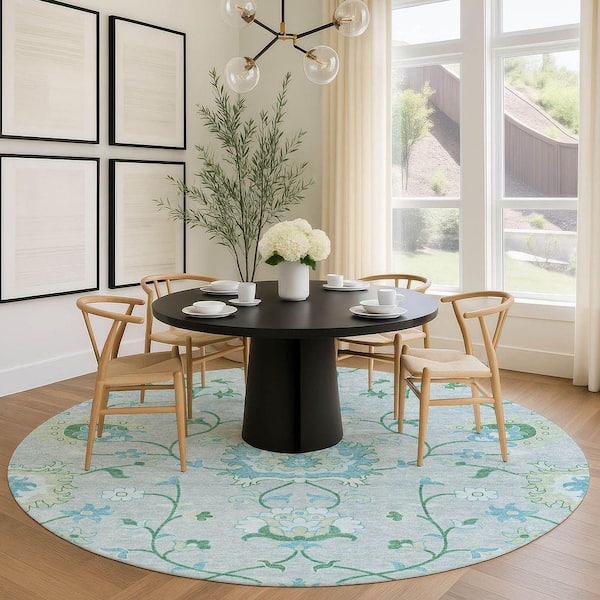 Chantille Machine Washable Indoor/Outdoor Abstract ACN2291 Mint 8 ft. x 8 ft. Round Rug