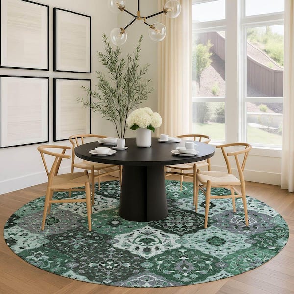 Chantille Machine Washable Indoor/Outdoor Abstract ACN2292 Green 8 ft. x 8 ft. Round Rug