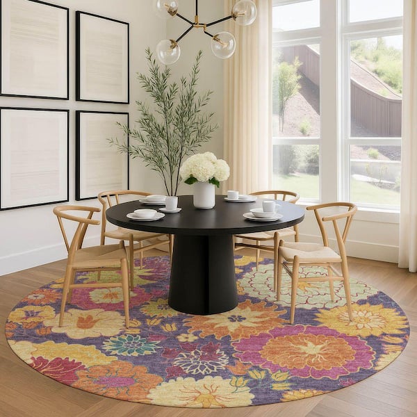Chantille Machine Washable Indoor/Outdoor Abstract ACN2293 Purple 8 ft. x 8 ft. Round Rug