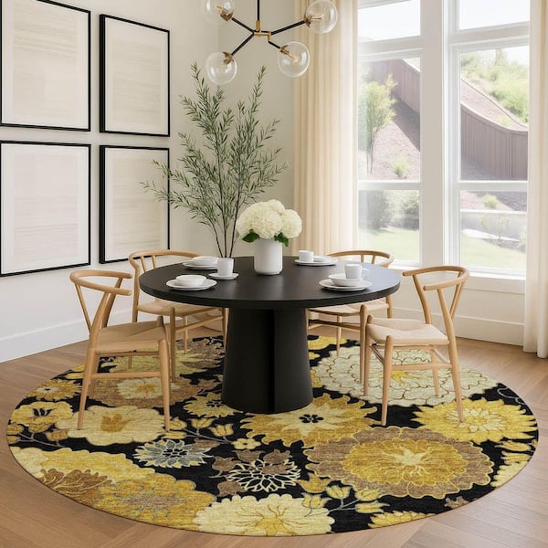 Chantille Machine Washable Indoor/Outdoor Abstract ACN2294 Black 8 ft. x 8 ft. Round Rug