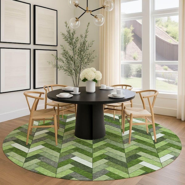 Chantille Machine Washable Indoor/Outdoor Abstract ACN2296 Olive 8 ft. x 8 ft. Round Rug