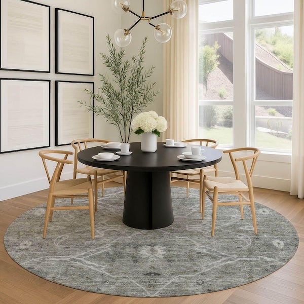 Chantille Machine Washable Indoor/Outdoor Abstract ACN2298 Pewter 8 ft. x 8 ft. Round Rug