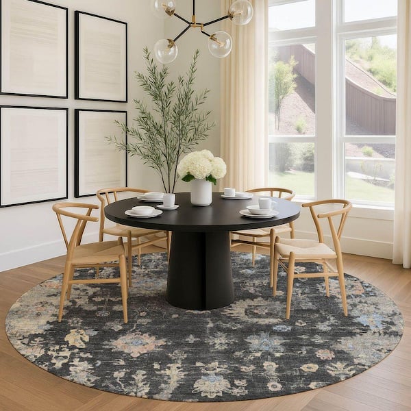 Chantille Machine Washable Indoor/Outdoor Abstract ACN2302 Charcoal 8 ft. x 8 ft. Round Rug