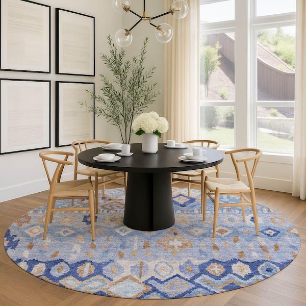 Chantille Machine Washable Indoor/Outdoor Abstract ACN2303 Blue 8 ft. x 8 ft. Round Rug