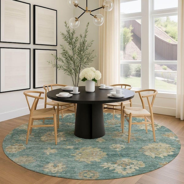 Chantille Machine Washable Indoor/Outdoor Abstract ACN2305 Aloe 8 ft. x 8 ft. Round Rug