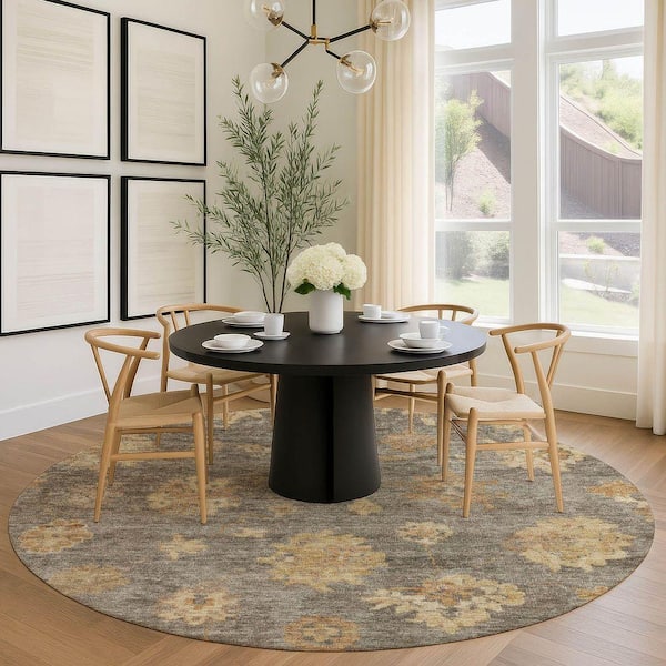 Chantille Machine Washable Indoor/Outdoor Abstract ACN2305 Taupe 8 ft. x 8 ft. Round Rug