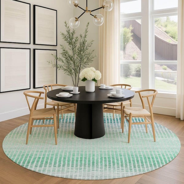 Chantille Machine Washable Indoor/Outdoor Abstract ACN2313 Turquoise 8 ft. x 8 ft. Round Rug