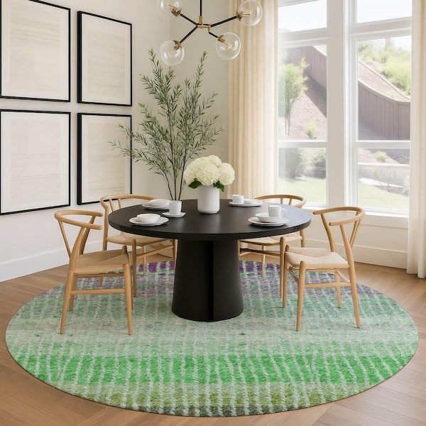 Chantille Machine Washable Indoor/Outdoor Abstract ACN2314 Fern 8 ft. x 8 ft. Round Rug