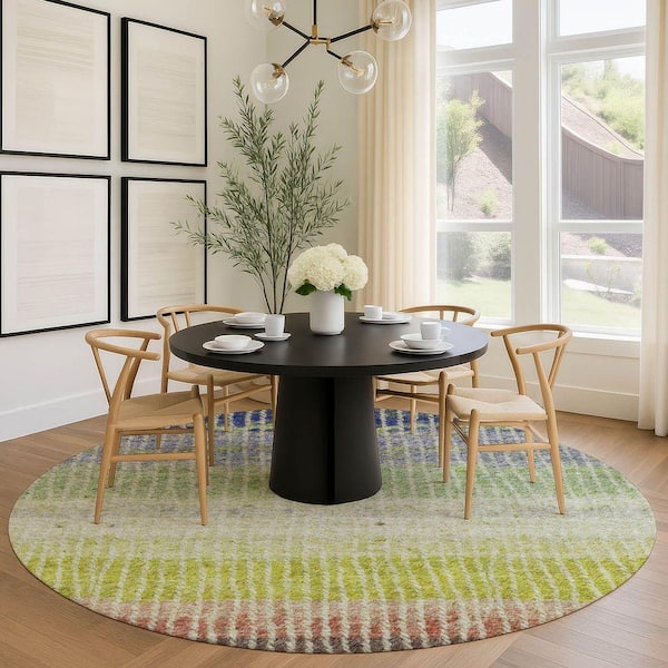 Chantille Machine Washable Indoor/Outdoor Abstract ACN2314 Olive 8 ft. x 8 ft. Round Rug