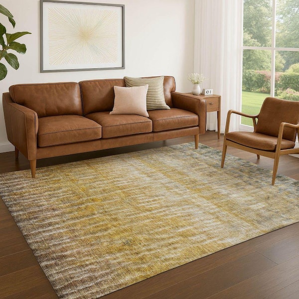Chantille Machine Washable Indoor/Outdoor Abstract ACN2317 Gold 8 ft. x 10 ft. Area Rug