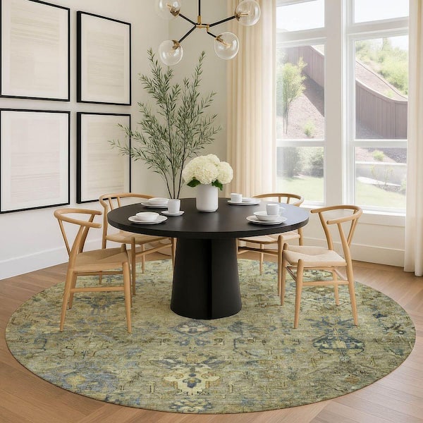 Chantille Machine Washable Indoor/Outdoor Abstract ACN2320 Green 8 ft. x 8 ft. Round Rug