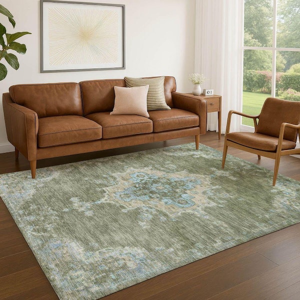 Chantille Machine Washable Indoor/Outdoor Abstract ACN2321 Basil 8 ft. x 10 ft. Area Rug